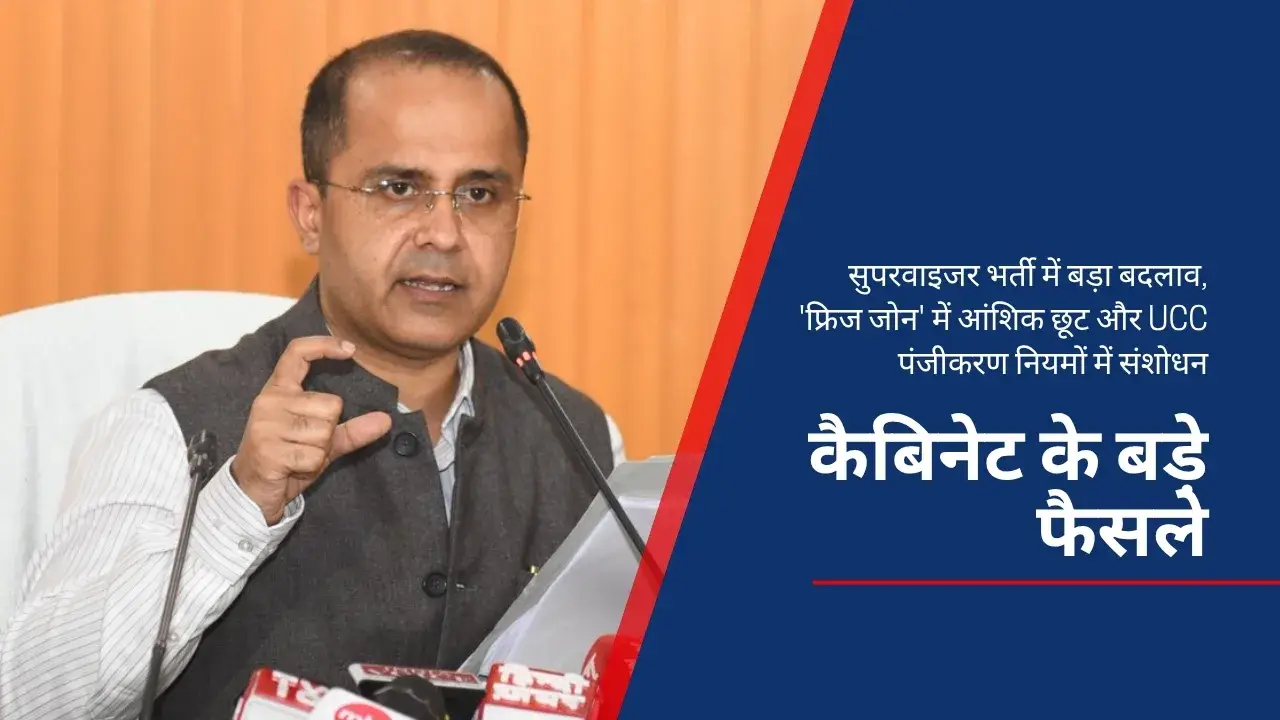 देहरादून। सचिव गृह श्री शैलेश बगौली ने आज कैबिनेट बैठक में लिए गए महत्वपूर्ण निर्णयों की जानकारी मीडिया को दी। कैबिनेट ने उत्तराखंड में महिला एवं बाल विकास, आवास, स्वास्थ्य, और विवाह पंजीकरण सहित कई विभागों से संबंधित सेवा नियमावली और नीतिगत संशोधनों को मंजूरी दी है।