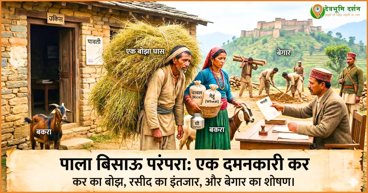 पाला बिसाऊ परंपरा: उत्तराखंड के ऐतिहासिक पन्नों, विशेषकर टिहरी रियासत के कालखंड में कई ऐसी प्रशासनिक व्यवस्थाओं का जिक्र मिलता है, जो आज के समय में अकल्पनीय लगती हैं। इनमें से एक सबसे चर्चित और दमनकारी व्यवस्था थी— ‘पाला बिसाऊ परंपरा’ (Pala Bisau Tradition)। यह केवल एक कर (Tax) नहीं था, बल्कि शोषण का एक ऐसा माध्यम था, जिससे पहाड़ की भोली-भाली जनता वर्षों तक त्रस्त रही। आइए जानते हैं कि आखिर पाला बिसाऊ परंपरा क्या थी और इसने आम जनजीवन को कैसे प्रभावित किया।
