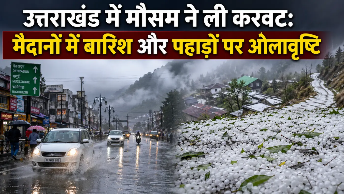 उत्तराखंड में मौसम ने ली करवट, 29 अप्रैल 2026। उत्तराखंड में चिलचिलाती गर्मी के बीच मौसम ने अचानक करवट बदल ली है। सक्रिय हुए पश्चिमी विक्षोभ (Western Disturbance) के प्रभाव से बुधवार सुबह से ही राज्य के मैदानी इलाकों से लेकर हिमालयी चोटियों तक मौसम का मिजाज बदल गया है। जहाँ मैदानी जिलों में बारिश से तापमान गिरा है, वहीं ऊंचे पहाड़ी क्षेत्रों में भारी ओलावृष्टि ने जनजीवन को प्रभावित किया है।